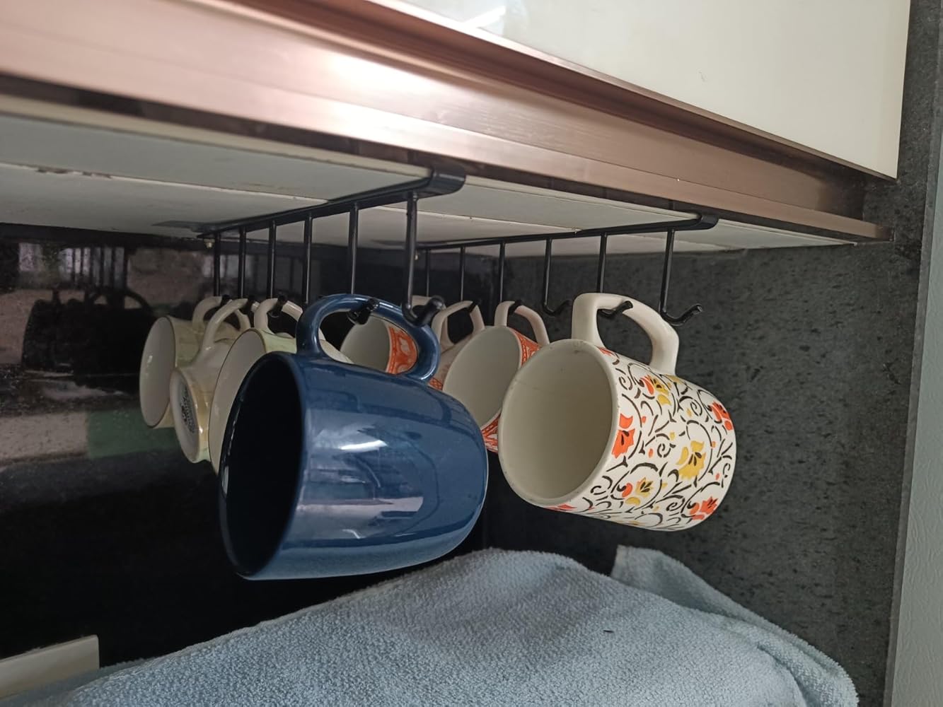 Keep your kitchen neat, stylish, and clutter-free with this Under-Shelf 6-Hook Mug & Cup Holder Rack. Designed to slide easily onto any shelf, this smart organizer instantly adds hanging space for your mugs, cups, spoons, utensils, and more. No drilling, no tools — just a clean, space-saving upgrade for your kitchen.